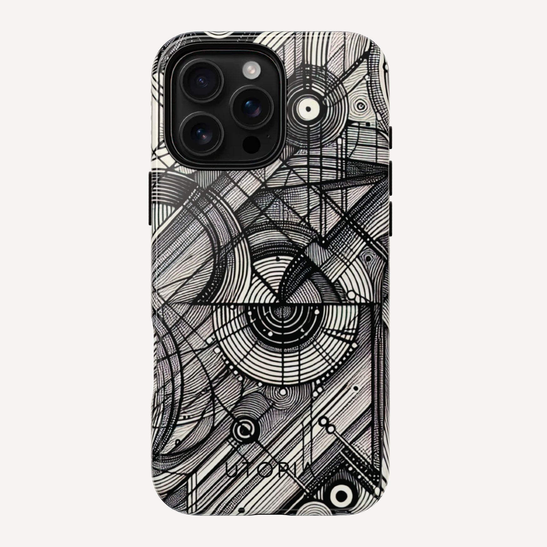 Get ready for the future with our abstract black and white geometric design phone case. Featuring bold circles, lines, and intersecting shapes, this case is not only visually striking but also provides a sturdy protection for your phone. Embrace the bold and intricate design of our Future case now!