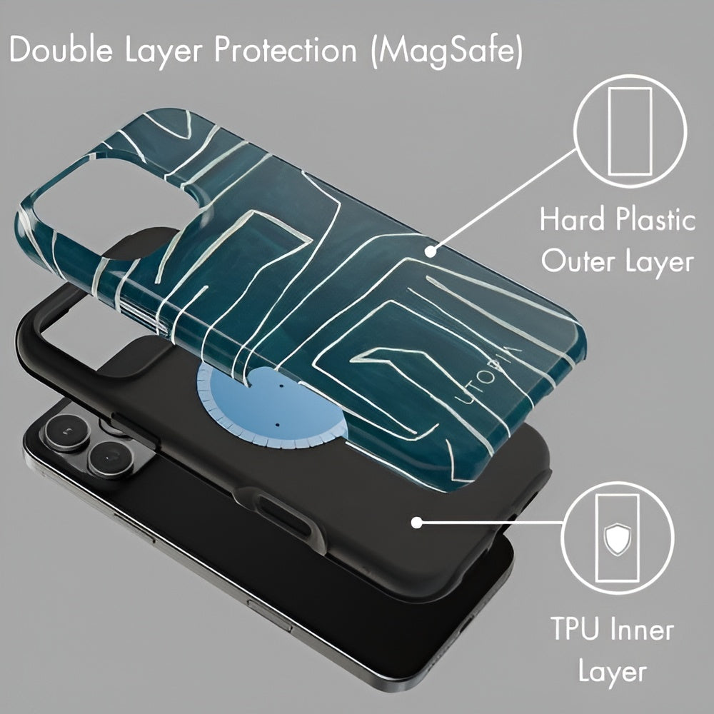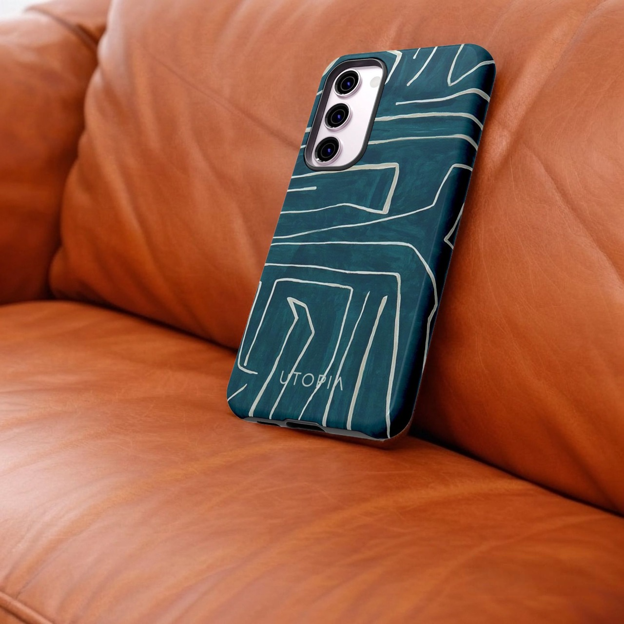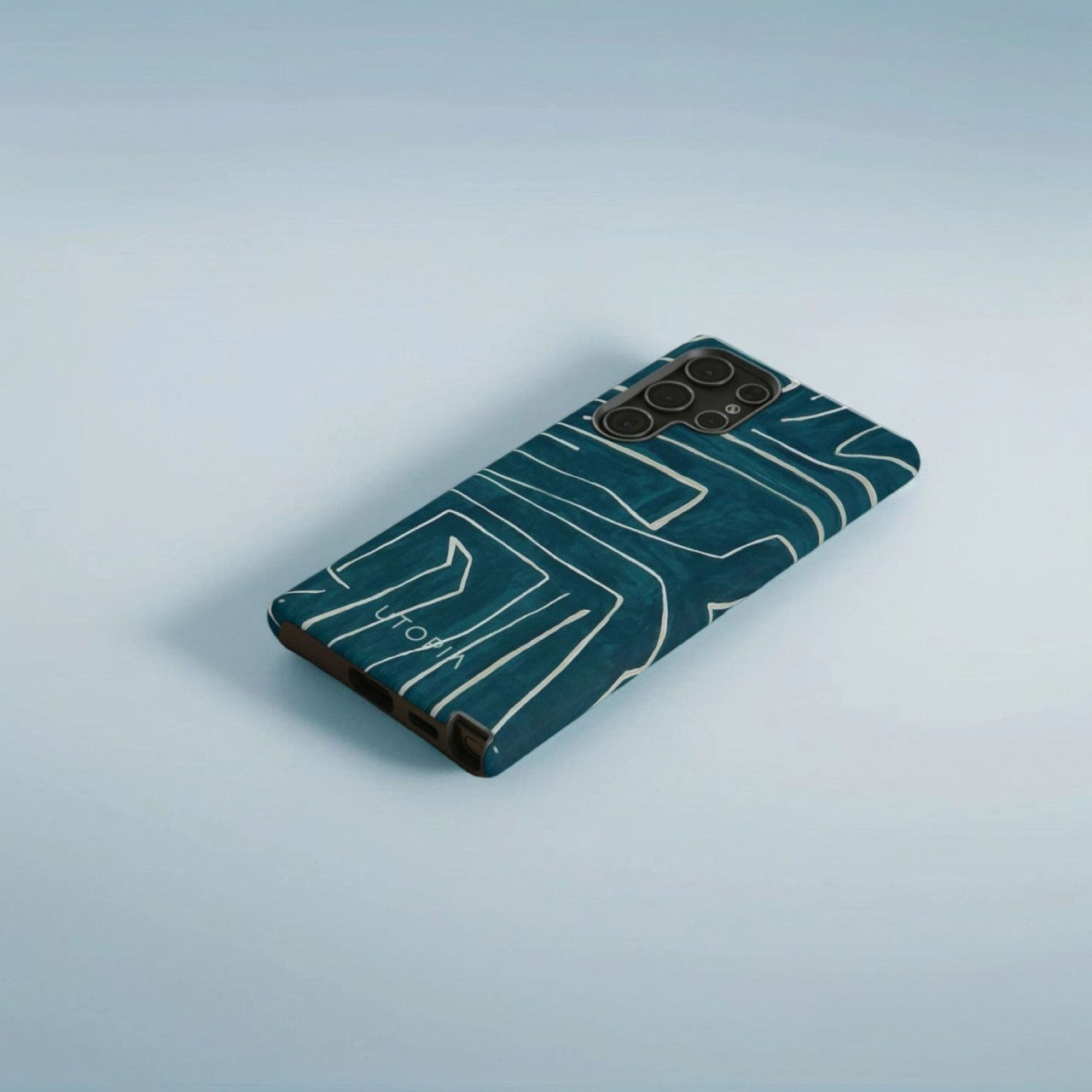 Add some abstract flair to your phone with our Fudge phone case. With white lines forming geometric patterns on a dark blue background, this case is both bold and stylish. Protect your phone in a unique and playful way. (Don't worry, it won't actually taste like fudge.)