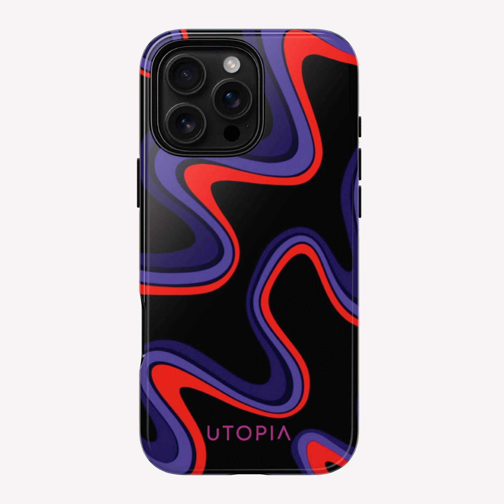 Get lost in the colorful abstract design of Loophole phone case. With wavy lines in red, purple, and blue on a sleek black background, your phone will stand out in style. Protect your phone while adding a touch of playfulness to your look. (Warning: may induce phone gazing!)