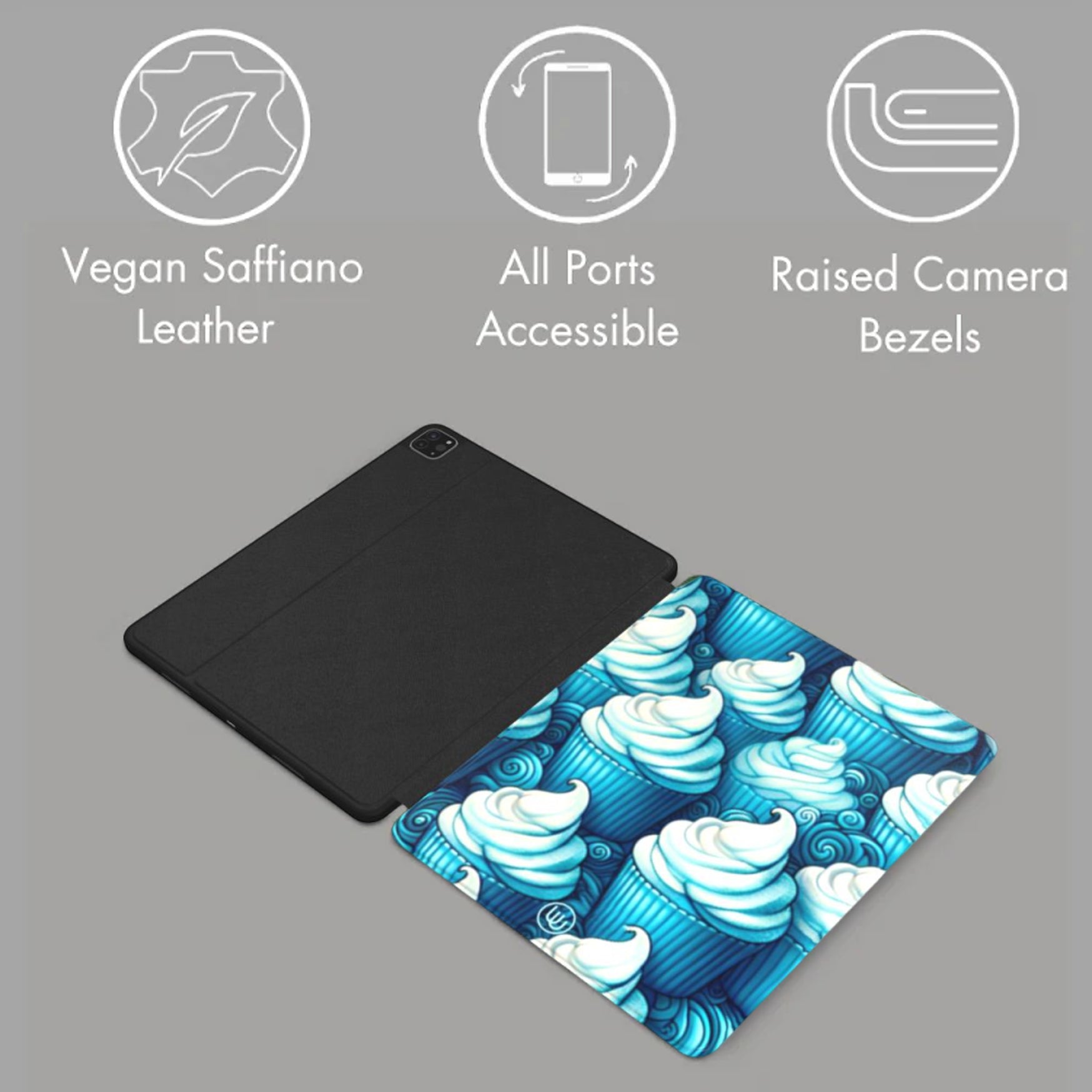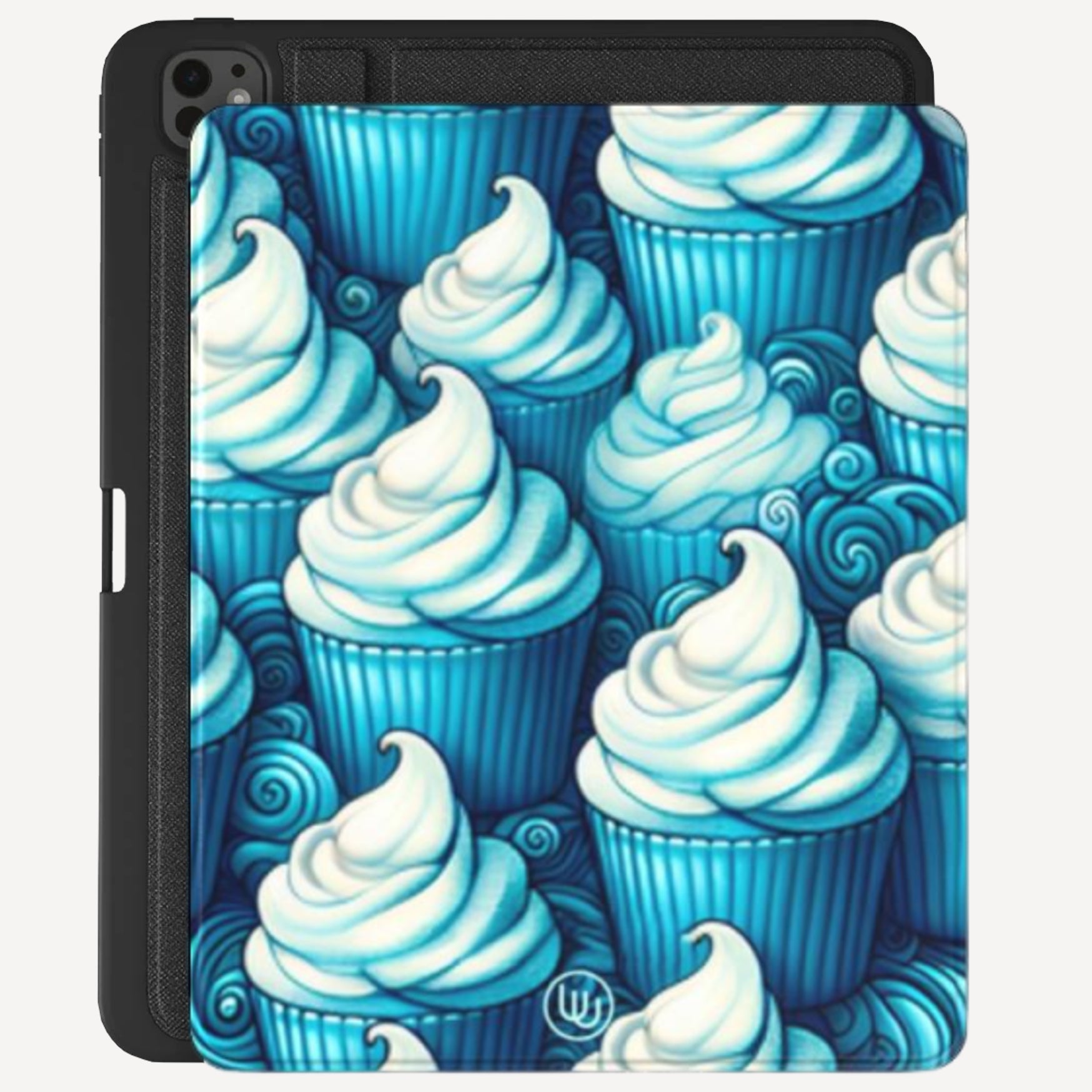 Add a playful touch to your iPad with our Sugarcube case! Featuring a fun pattern of blue cupcakes topped with fluffy white frosting, it's perfect for a sweet treat vibe. Protect your iPad with a touch of quirky style. (Sweet deal!)