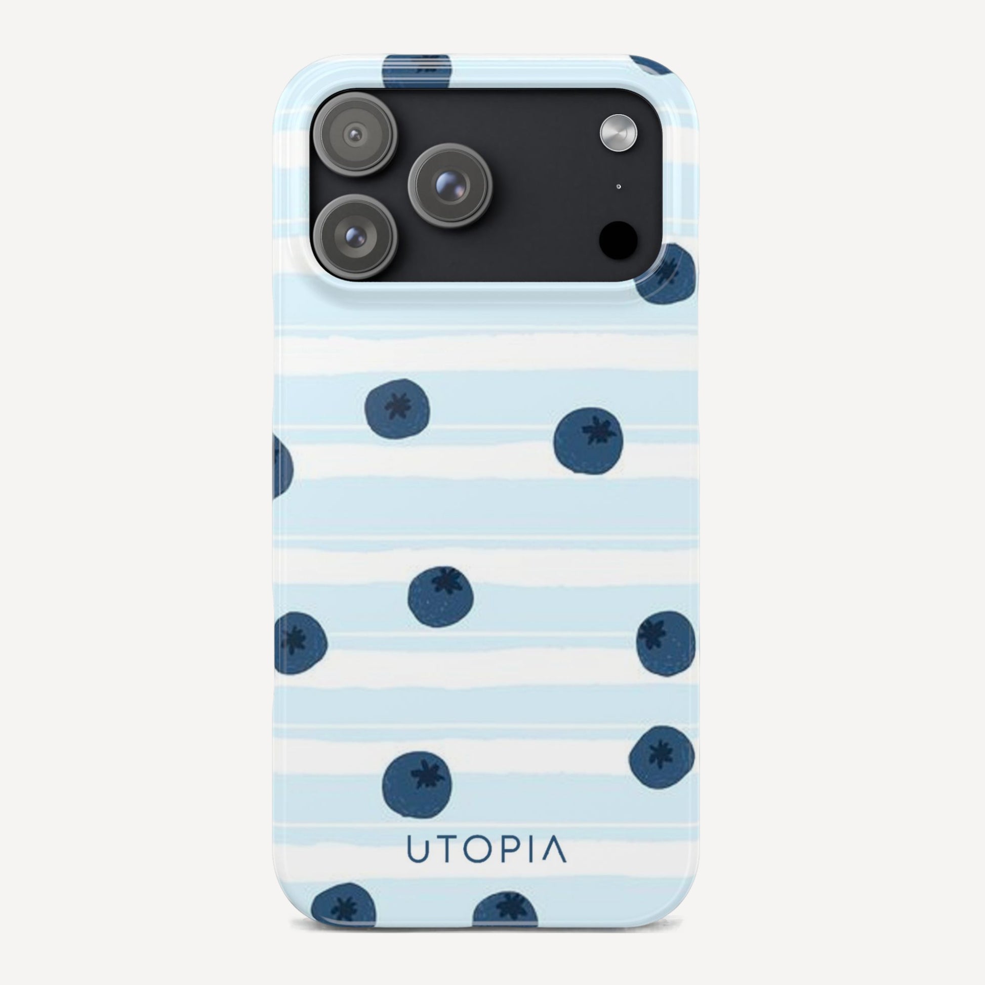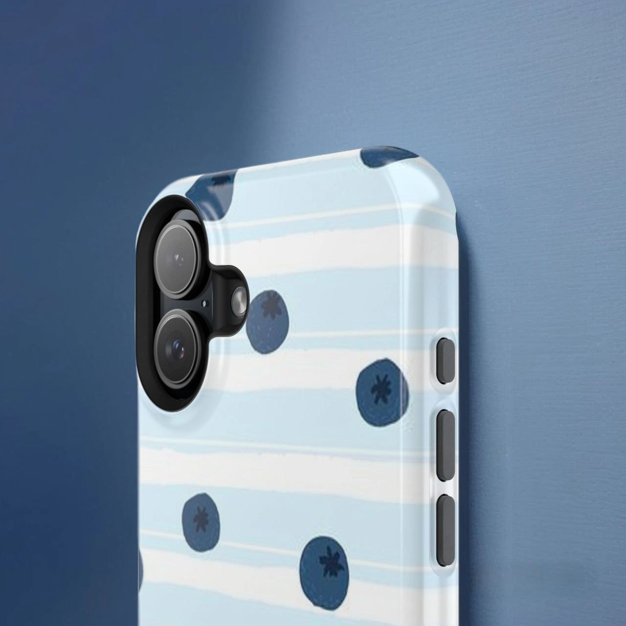 Introducing Sweeter - a patterned design with dark blue circles resembling blueberries on a light blue and white striped background. This playful and unique design is sure to add a pop of fun to any outfit. Don't be blue, add some sweetness to your wardrobe with Sweeter!