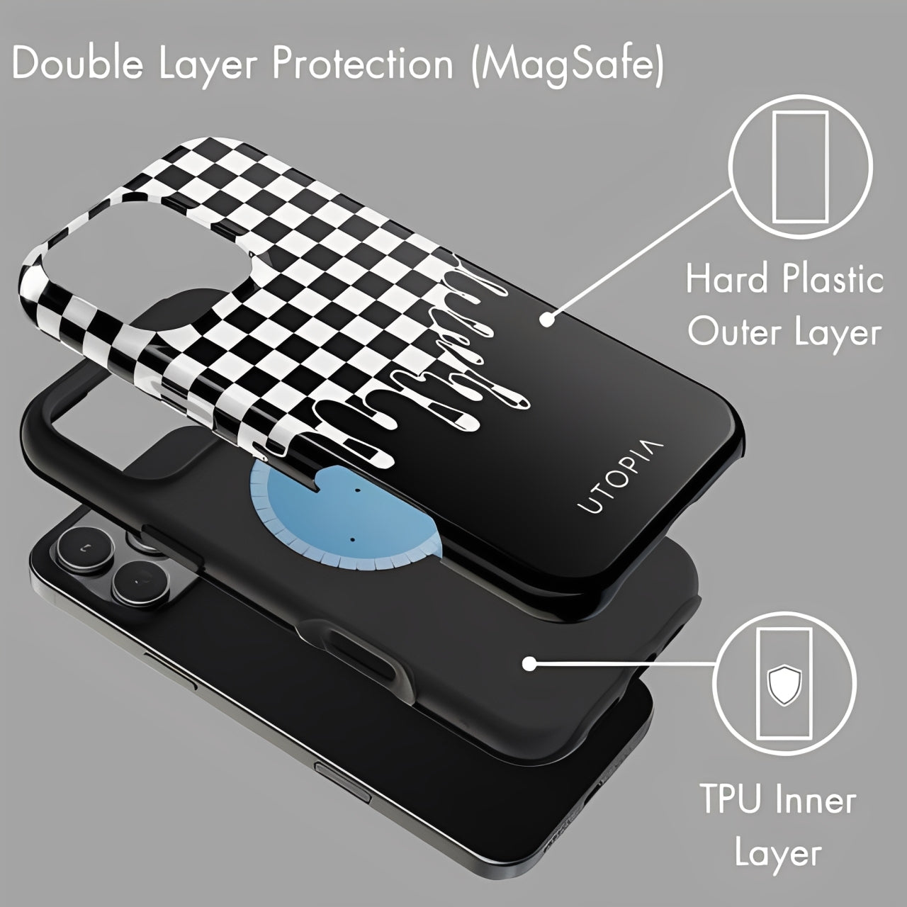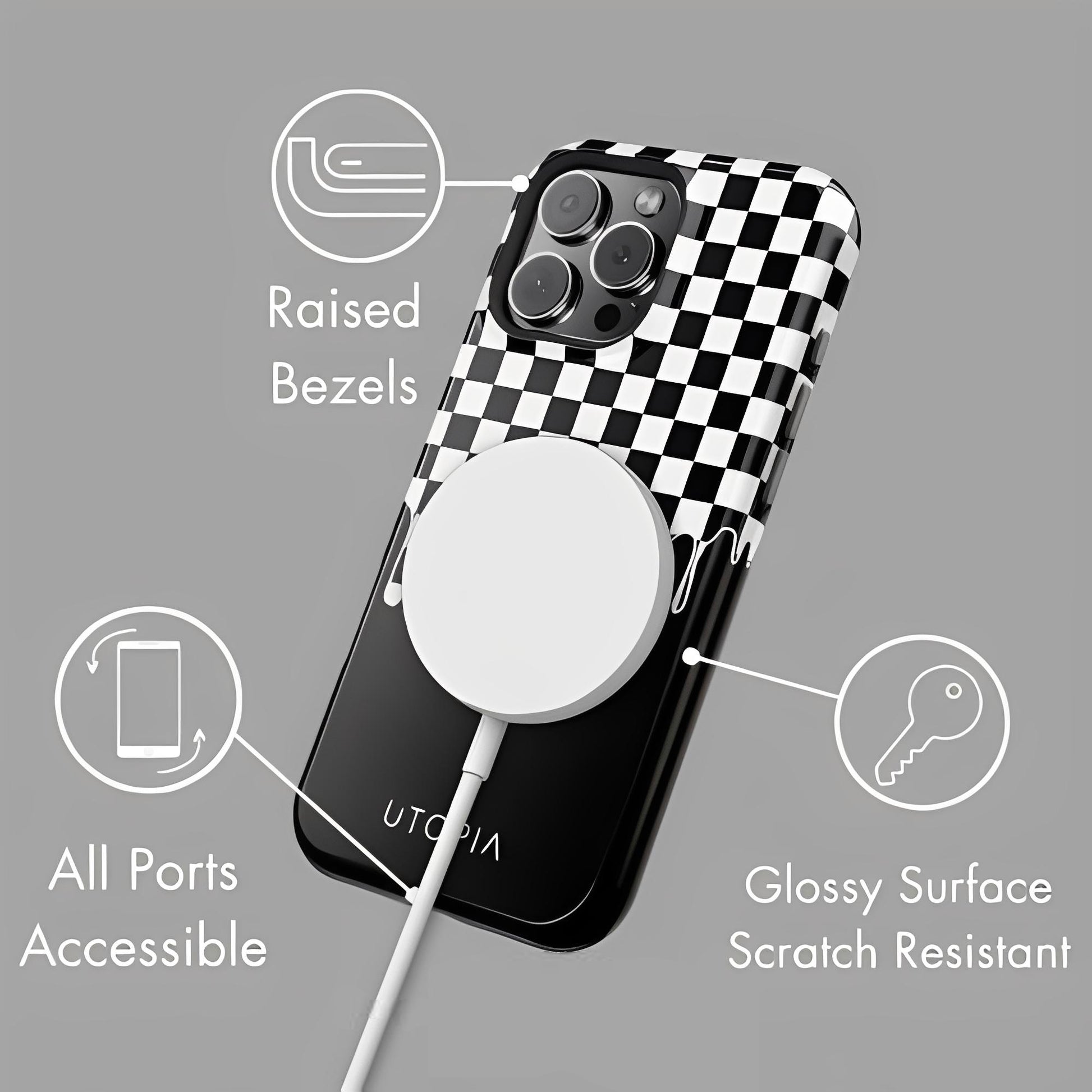 Get ready to conquer the day with our Warrior phone case! This black and white checkerboard pattern melts into a sleek black background, adding a touch of style to your device while also protecting it. Stand out from the crowd with this unique and versatile phone case.